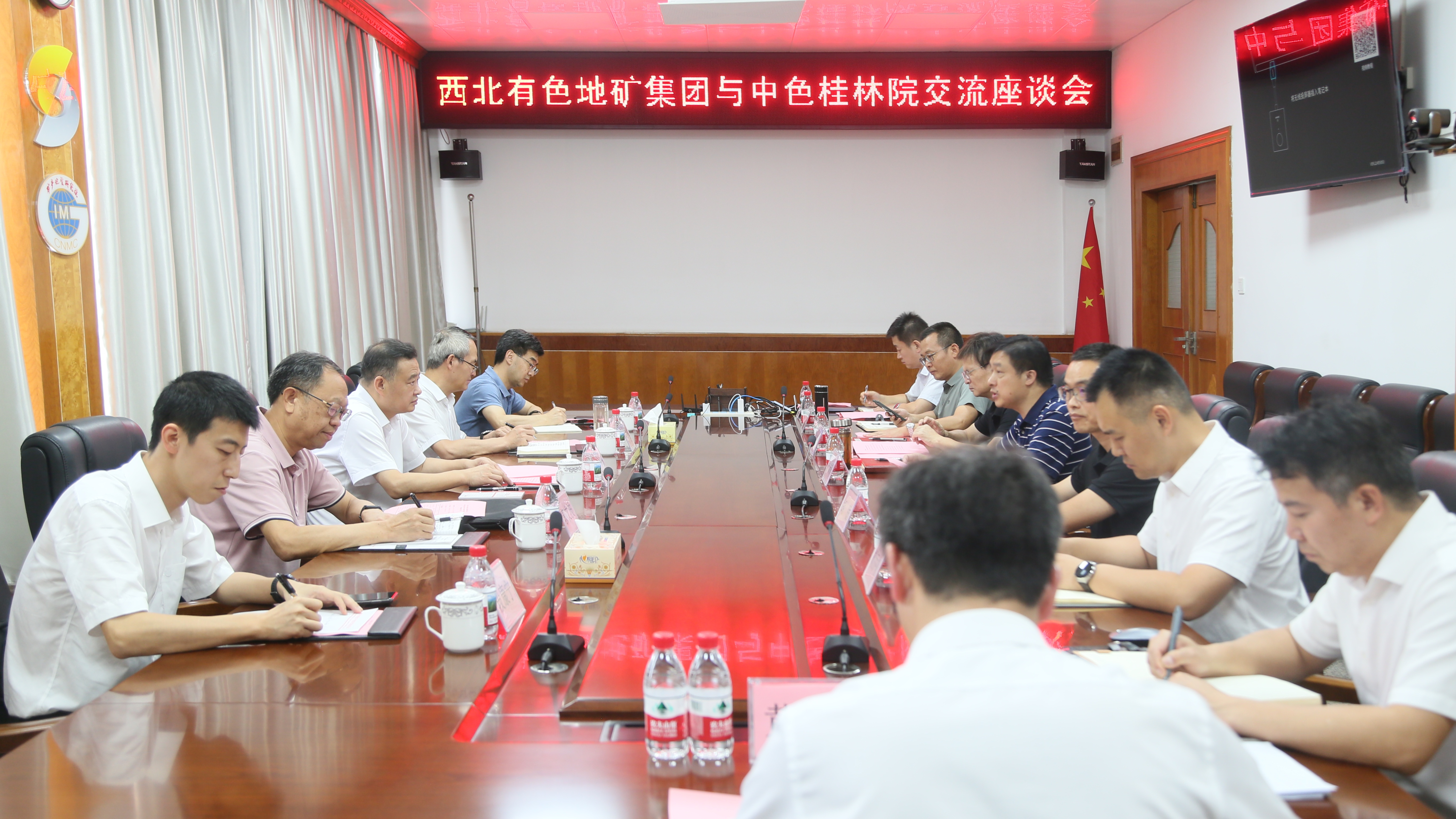 9月28日,中色桂林院党委书记、董事长卢宗柳在公司总部会见了到访的西北有色地矿集团党委副书记、董事、总经理陈超一行。双方围绕进一步落实新一轮找矿突破战略行动、深化西北及中亚地区资源勘查合作、加强新材料领域技术交流等议题开展座谈,共商合作发展。西北有色地矿集团党委委员、副总经理、总工程师王瑞廷;中色桂林院党委副书记、总经理胡朋,党委委员、总会计师刘宗勇,党委委员、副总经理胡乔帆,党委委员、副总经理赵延朋出席交流座谈会。